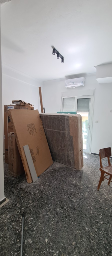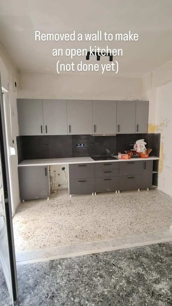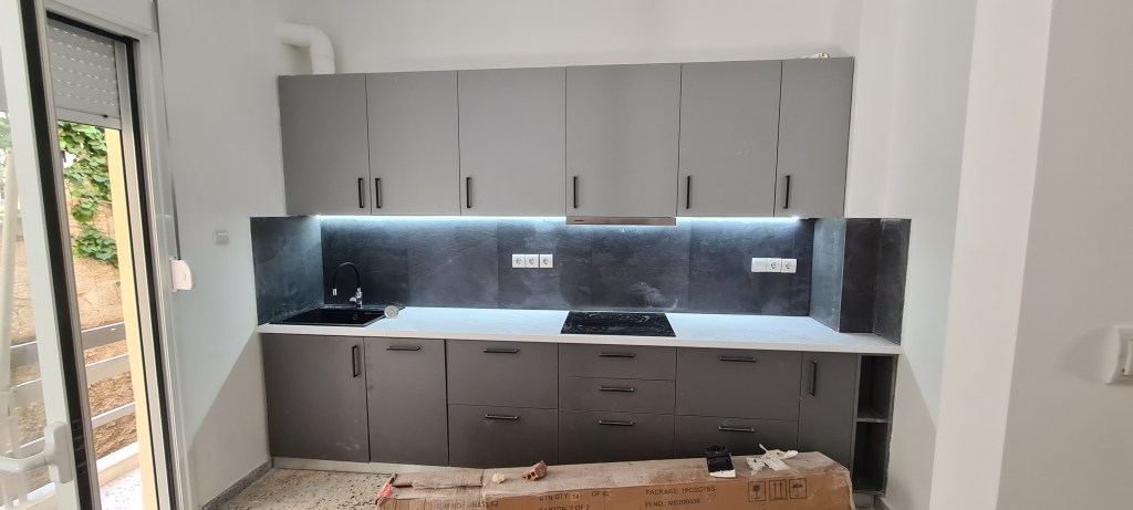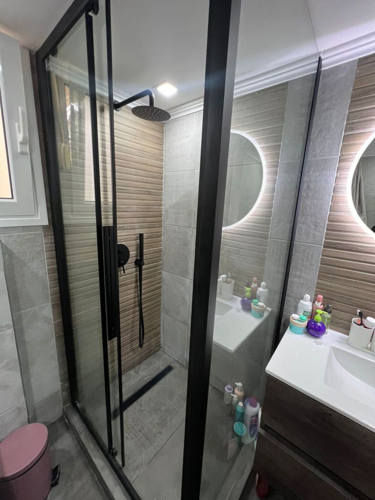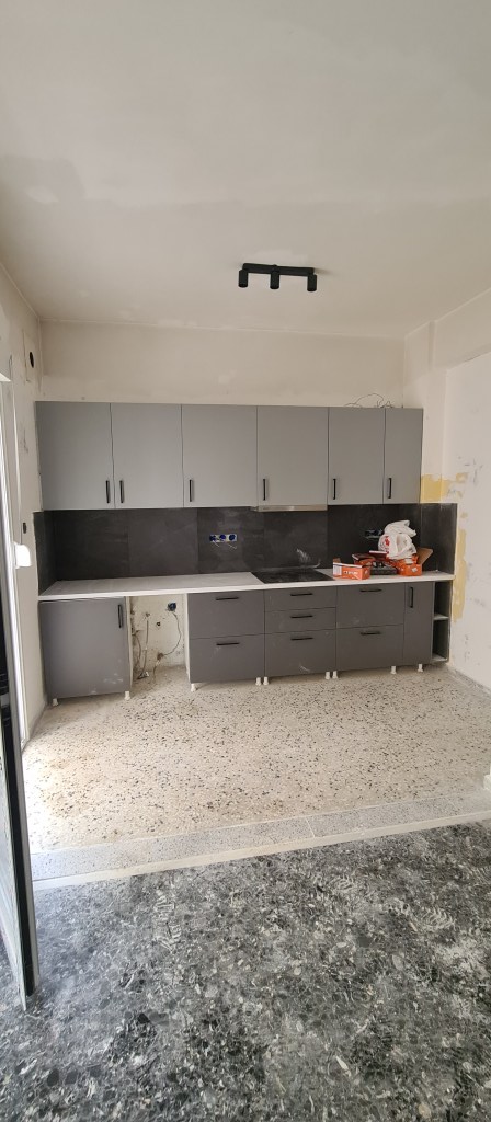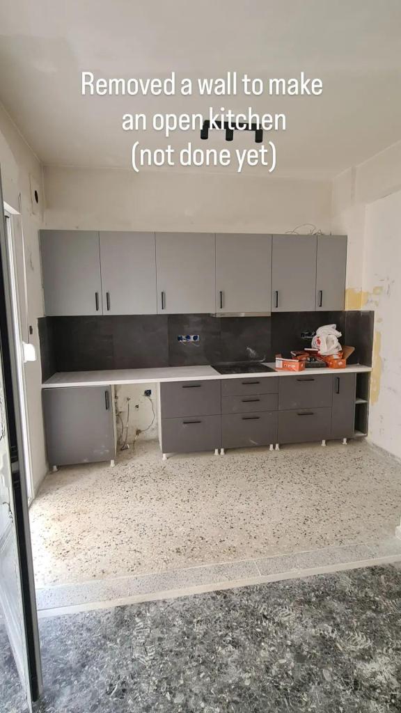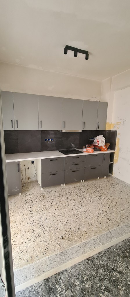 Beautiful 2 bedroom apartment, needed total renovation. Including removal of the wall to the kitchen and making an open living room. Our client decided to keep the old floor which we polished. The rest is new – electricity, closets, plumbing, shower, kitchen, windows, doors etc.