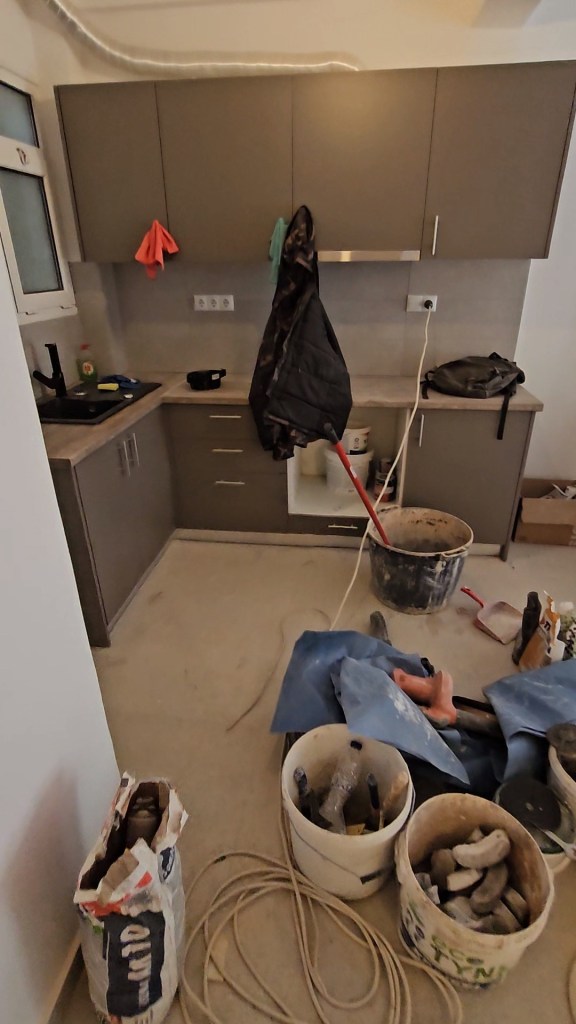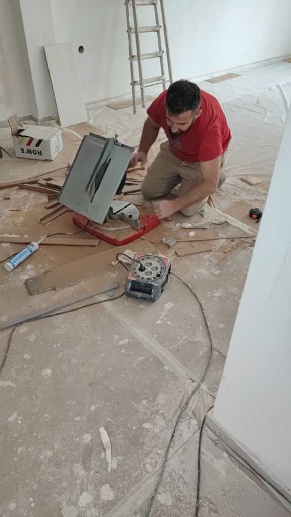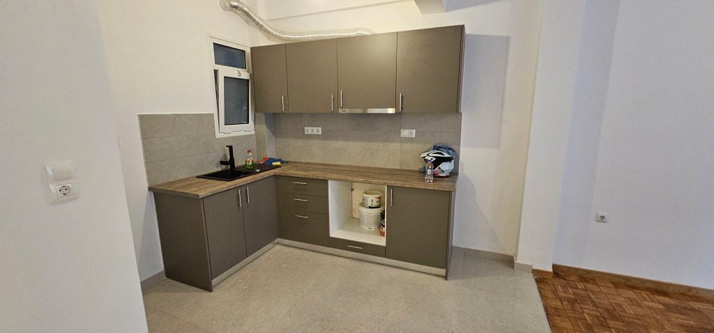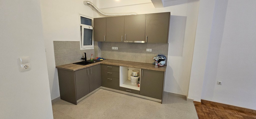 Almost full renovation of an old apartment of 75 meters, including rearrangement of the space and removing a wall to make an open kitchen.